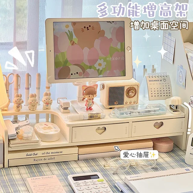 데스크탑 추가 상승 사무실 학생 책상 보관 랙은 스마트한 공간 활용을 위한 제품입니다. 이 제품은 인스 기숙사나 사무실에서 노트북 랙이나 파일 트레이로 사용할 수 있도록 디자인되었습니다. 여기에는 스토리지 랙과 서랍이 함께 제공되어 보관 공간을 효율적으로 활용할 수 있습니다.